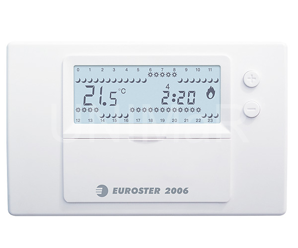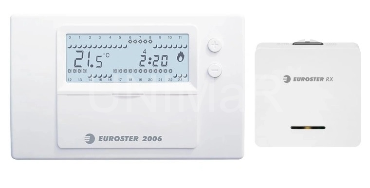 Bezdrátový termostat Euroster 2006TXRX umožňuje velmi jednoduchým a efektivním způsobem řídit teplotu v místnostech, bez nutnosti pracné kabeláže mezi regulátorem a topným zařízením. Slouží k regulaci provozu kotle ÚT co dalších prvků otopné soustavy. Ovládá elektrospotřebiče, podlahové vytápění a klimatizaci. Regulátor pracuje ve dvou teplotních úrovních: komfortní teplota (den) a ekonomická teplota (noc). Každou teplotu lze upravit v rozsahu 5-35°C. Regulátor lze naprogramovat v sedmidenním cyklu s přesností 0,5 hodiny, proto je zde možnost 48 změn úrovně teploty během dne. Regulátor umožňuje naprogramovat různá časová pásma pro každý den v týdnu.